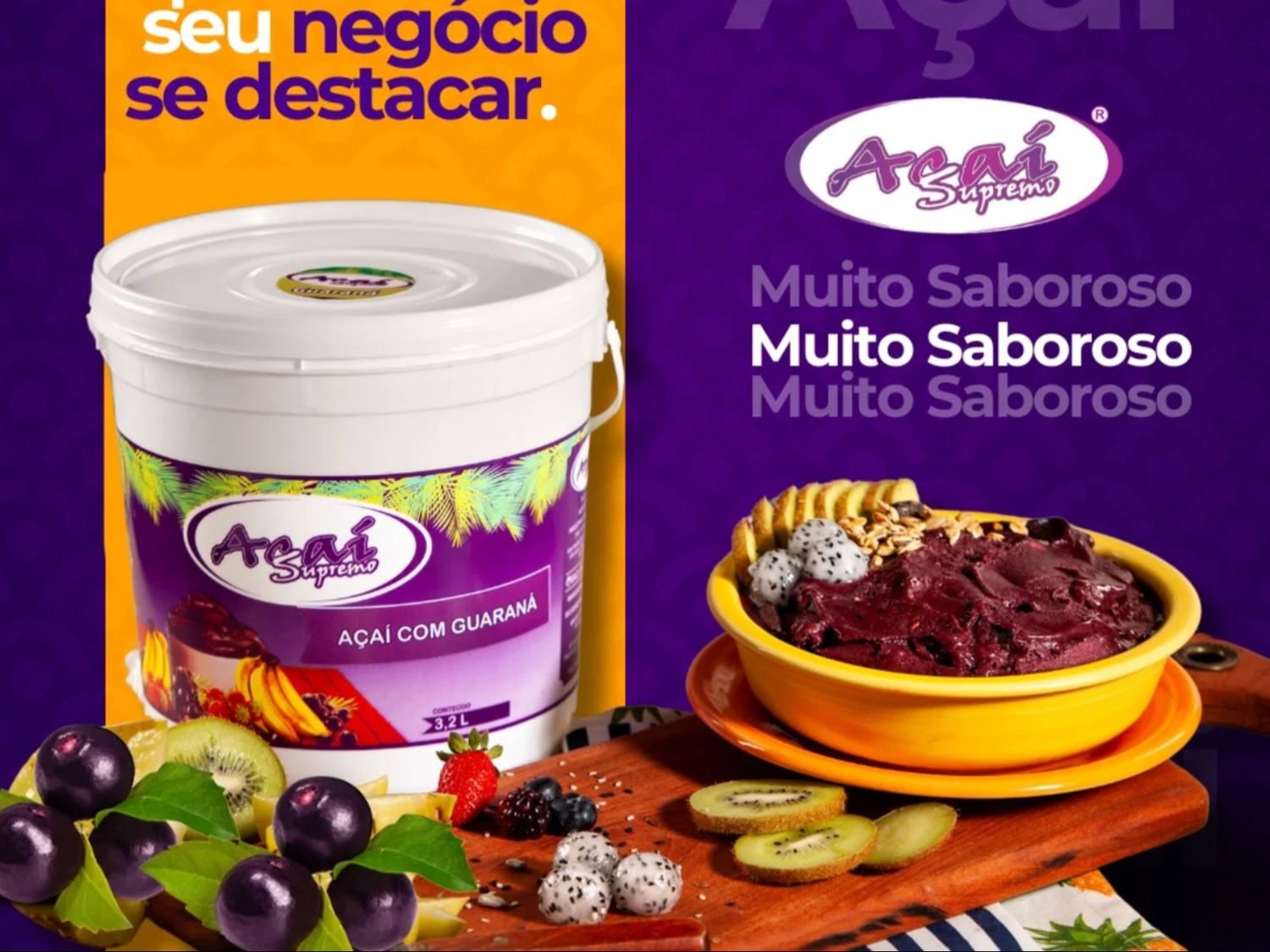 Açaí com guaraná no balde de 3,2 litros — cremoso, gelado e cheio de energia! Ideal para compartilhar ou aproveitar aos poucos. Perfeito para quem ama açaí de verdade!