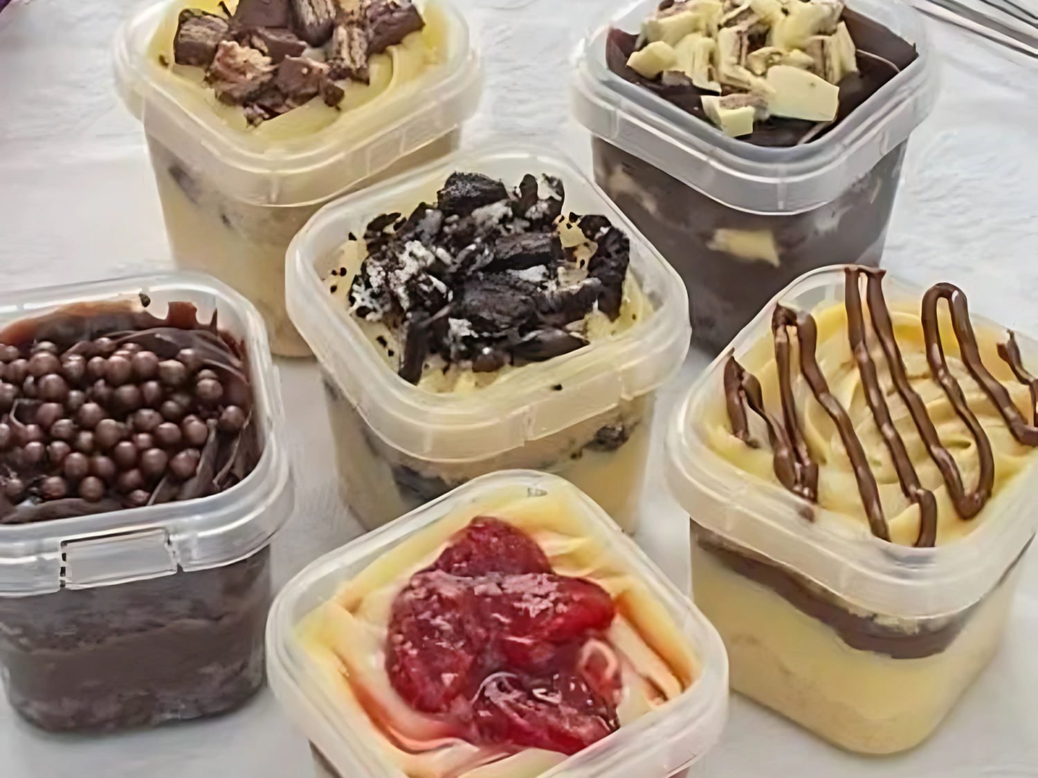 Cake in a jar: layers of soft cake and creamy filling, lovingly assembled in a convenient, delicious container. Choose your favorite flavor!